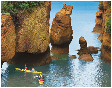 潮の満ち引きが世界一大きい海岸線。20~30mも満ち引きがあり、干潮時には何マイルも沖合いまで歩けます。また、水面下にあった岩肌の層が何万年の歴史を感じさせてくれます。また、近くにはたくさんのワイナリーがあり、見学もできます。